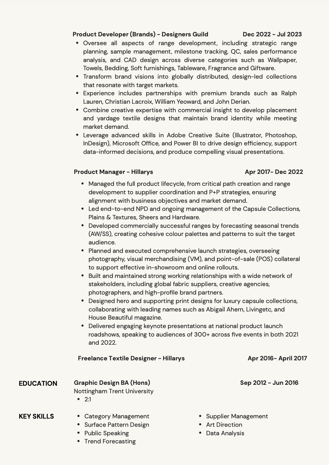 Managed end-to-end NPD across multiple categories, using data-driven insights and seasonal trend forecasting.
